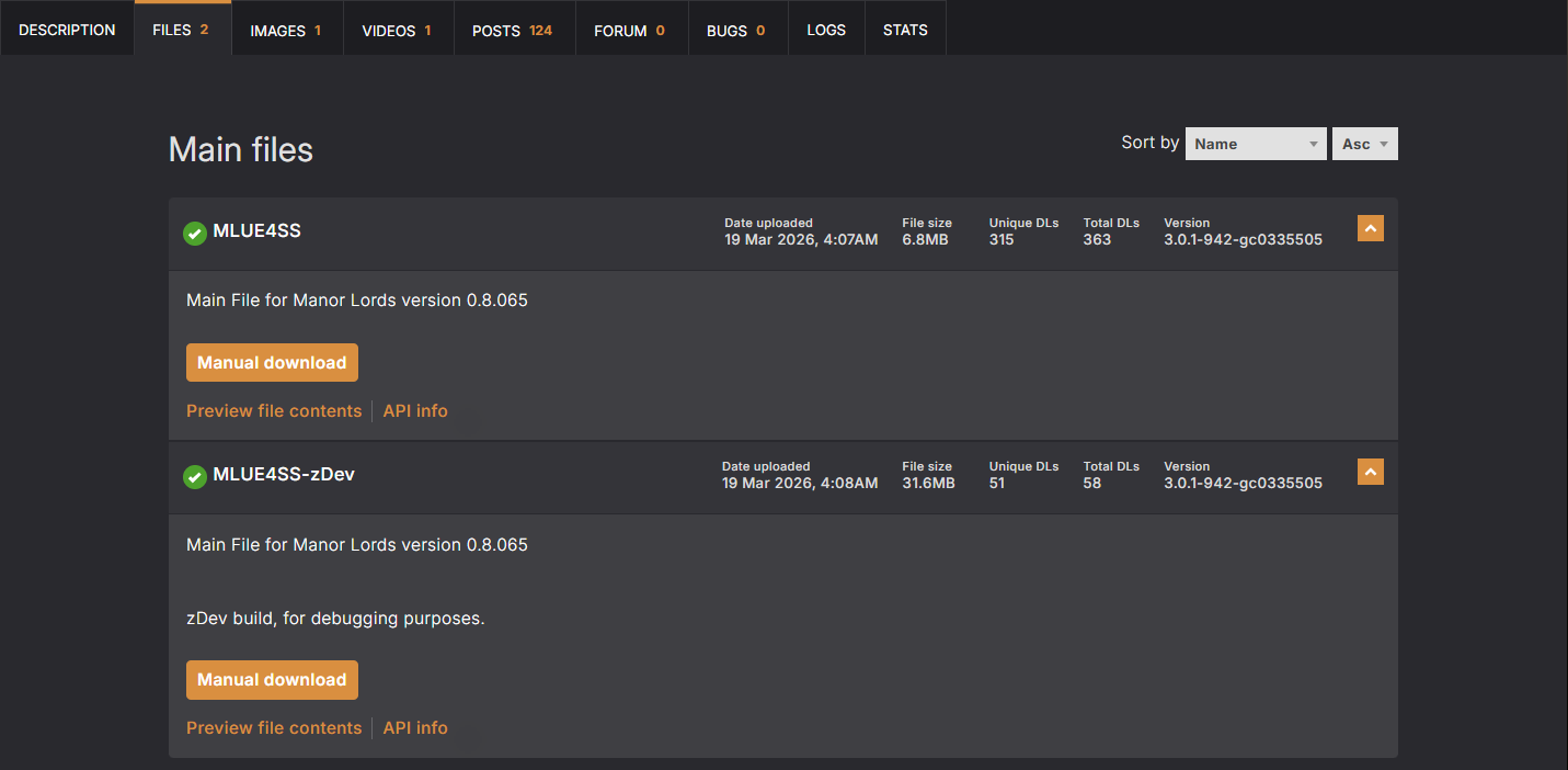 - MLUE4SS-zDev is a variant meant for Mod Authors or users interested in real-time debugging information.